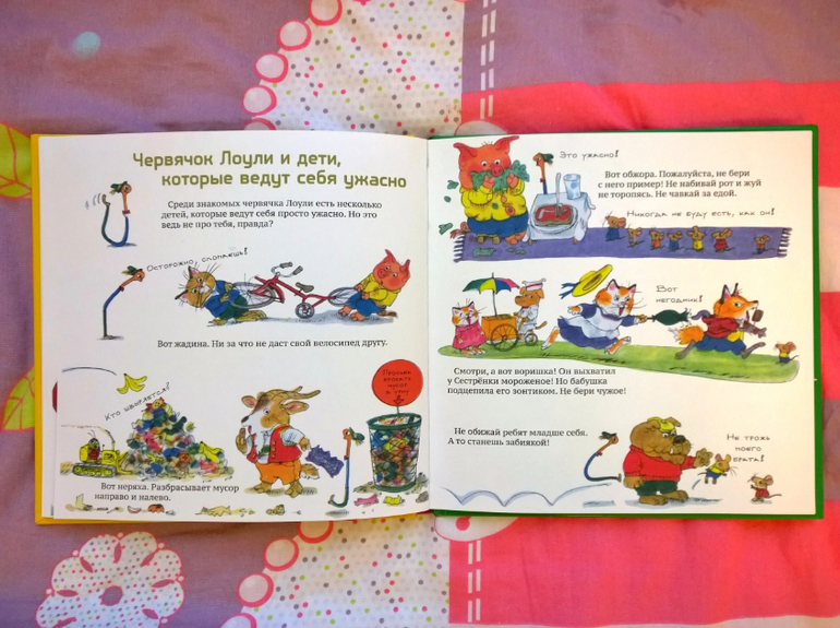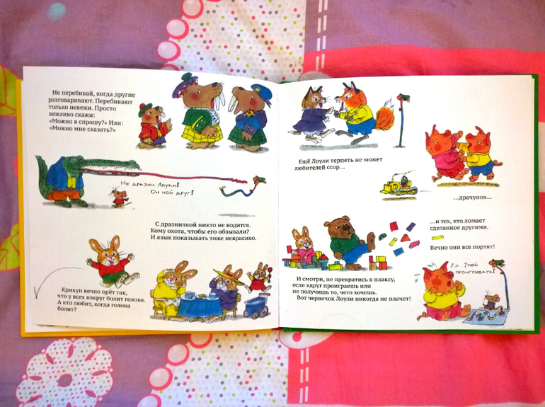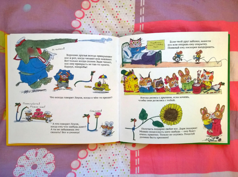 Немного не по порядку, да?) У нас опять Скарри, на этот раз - про хорошие манеры и добрых друзей. Это вообще моя слабость - детская литература, формирующая поведение без занудных текстов и различных а-та-та! Над этой книгой мы вдвоем с дочкой смеемся. А иногда, прочитав про какого-нибудь капризного поросенка, Вера спрашивает: "мама, а я не веду себя так же??".. Остается только молчать и загадочно улыбаться. Но зерно раздумий уже посеяно в маленькую головку! Смотрим примеры: