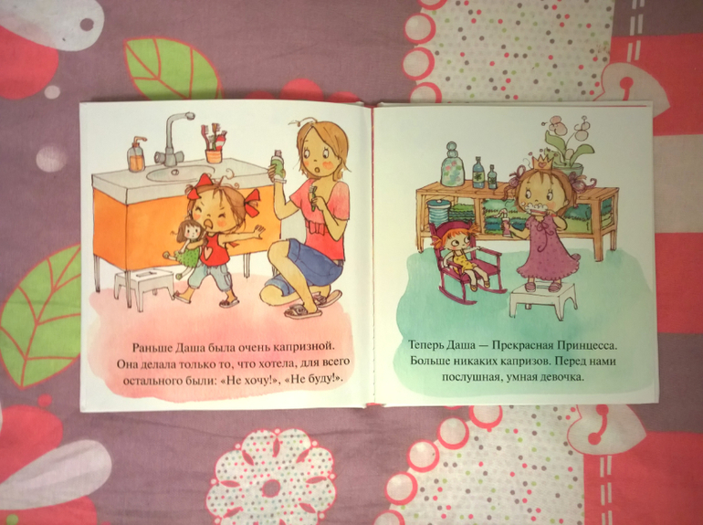 Если у вас растет дочь, и вам иногда приходится мягко делать ей замечания хвататься за голову/ремень, то вас наверняка заинтересуют эту прекрасные небольшие книжечки, симпатичные внешне и наполненные очень мудрыми мыслями (в картинках, конечно). Это страницы из книги про капризы: