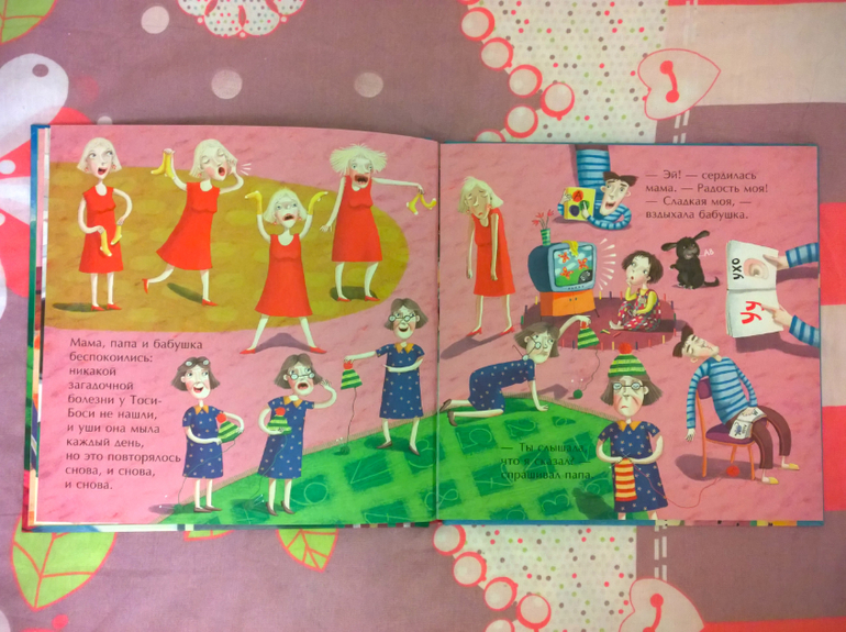 Вторая книга - про уши, которыми не пользовались, оттого они обиделись и шустро сбежали, а куда - еще придется узнать нашей Тосе Босе. Ну, что сказать. Книга достойная, но такого сильного эффекта, как версия с Чистюлей, не возымела) Читаем и любим, однако Чистюлю все-таки больше. Смотрим странички: