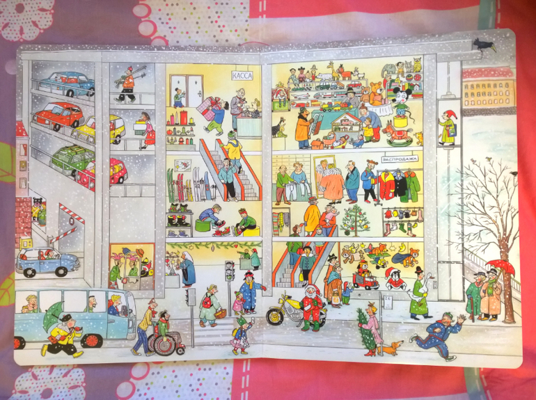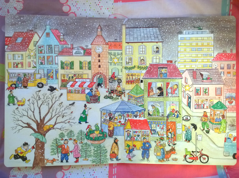 Как видите, тут есть что обсудить. Меняется погода, горожане занимаются привычными делами, кто-то пытается заснуть, кто-то покупает подарки к Рождеству, есть и вор, забравшийся в чужую квартиру и остановленный бдительной соседкой) А для подсказки хорошо до начала "чтения" заглянуть на заднюю обложку: