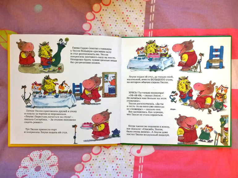 Нам эту книжку подарили по моему заказу, так что в целом я довольна. Неоспоримый плюс — она очень прочная. Мультик про Хакли — священная корова №2 после книжек )))). Иногда интерес слабеет, но потом снова просит (хотя вообще сейчас мультиков разрешаю мало, удалось с них слезть, боюсь теперь много включать ).А про сбежавшие уши книжка довольно безобидная и с юмором ))).