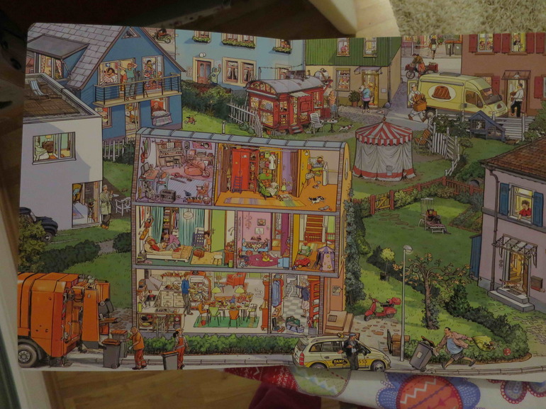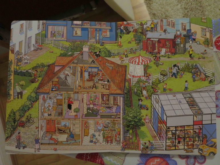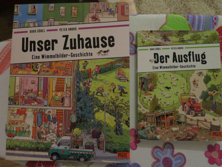 дошкольникамВчера пришел наш 19-й Wimmelbuch, изданный пару дней назад, это истории про один жилой квартал на семи разворотах. "Unser Zuhause" (наш дом) на картоне, большой размер. Другая книга ("За городом") у нас размером с тетрадь, более удобная для ребенка. Еще две ("Однажды в городе" и "В цирке