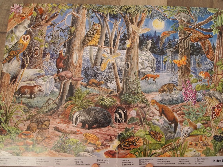 Но я не могу удержаться и не показать несколько разворотов) В книге про лесных животных наш любимый разворот - ночной: