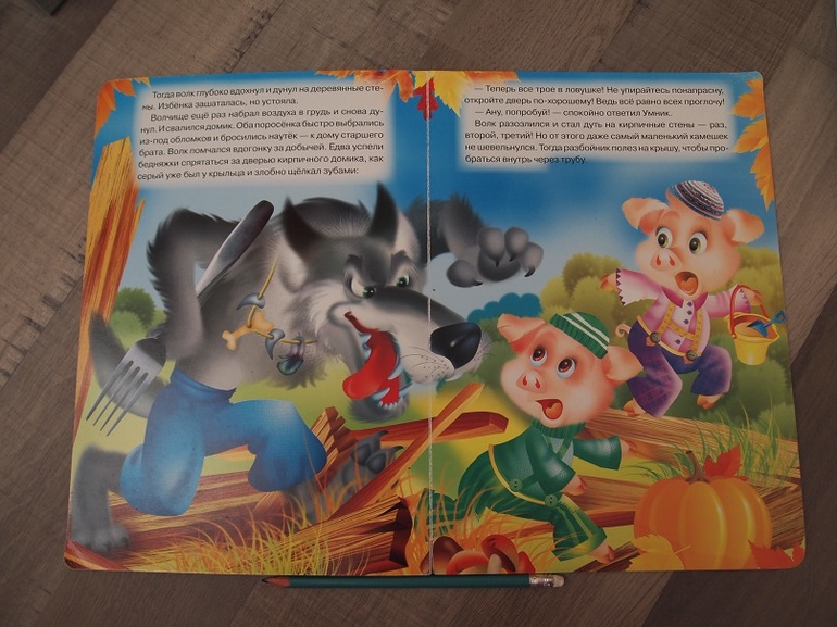 Самая неудачная здесь "Репка" - после рисунка с дедом и бабой идет сразу вся "бригада", ребенок тянет перевернуть, а мне ж надо еще пол-сказки рассказать. Потом заказала другую "Репку", но про нее в следующем обзоре.