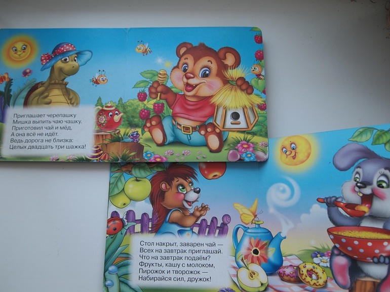 Стихи симпатичные, рисунки в целом тоже, Лиза избрано слушает, они для деток постарше конечно, но и брала их для "растерзания" (картон хороший плотный), чтоб смотрела книги и тренировалась с ними обращаться - для этого такие книги отлично подойдут.