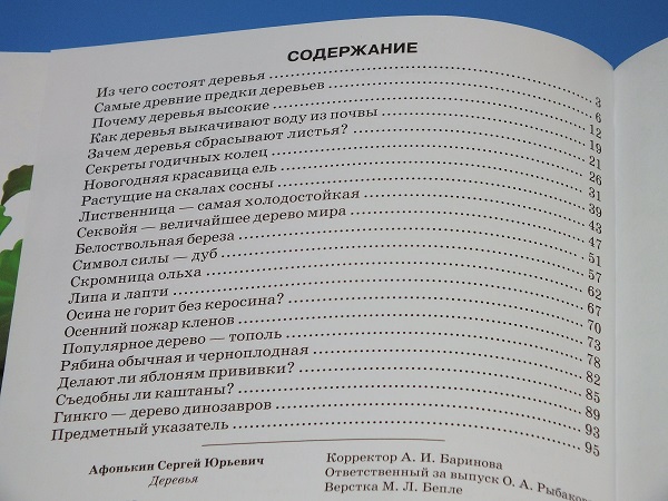 Мне кажется, затронуто всё. Ну почти всё. Рассказывается о самых известных, интересных деревьях подробно (вплоть до того, что из них производят). Так же автор не обошел мимо такие темы, как: строение деревьев, самые древние их предки, зачем и как образуется хлорофилл, корневой давление и как деревья выкачивают воду, зачем деревья сбрасывают листья, что такое "годичные кольца".