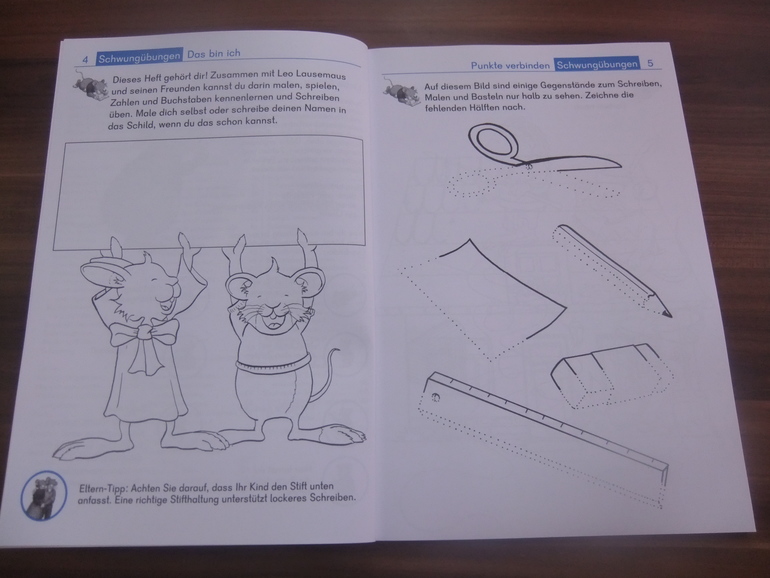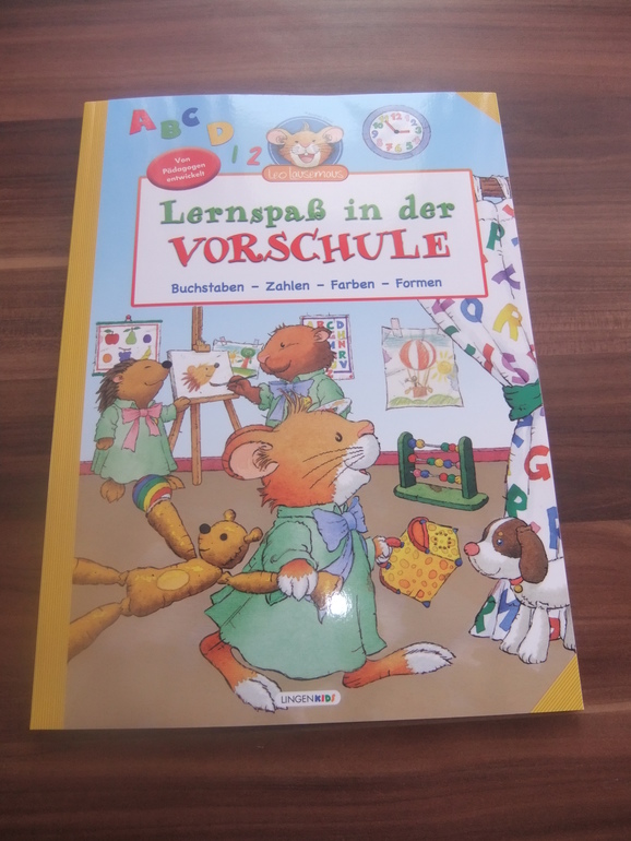 Вот такая книжка, формата А4, для дошкольников. Мышонок на рисунке- Лео Лауземаус. Вместе с ним и его друзьями ребёнок выполняет различные задания.