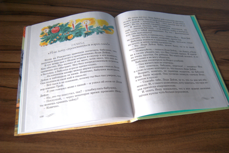 Да, возможно текст здесь на любителя, возможно то, что мальчик прятал долго куклу кому-то может не нравиться, можно почитать отзывы - многие даже ругают, но в нашем случае случилось 100% попадание. Пусть дочка еще не понимала всех нюансов повествования, но ее захватило. Мне самой книга тоже понравилась, не считаю, что мальчик не может играть в куклы, как и не считаю, что затрагивающаяся тема смерти вредна для детей, если уж на то пошло - Сказы Бажова изобилуют этой темой куда более.