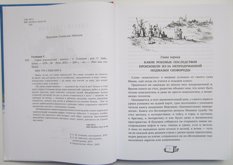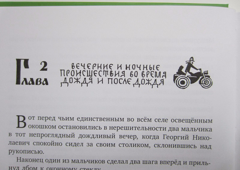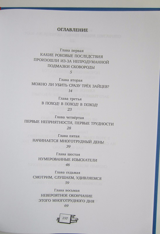 Названия глав интересным другим шрифтом, а нумерация страниц не просто с картинкой, как в "Сорока изыскателях", а каждая глава - со своей картинкой:
