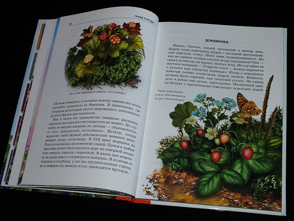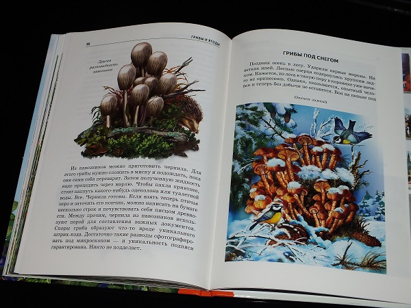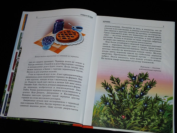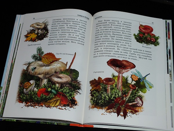 По содержанию никаких претензий нет. Описываются самые популярные ягоды и грибы ( в том числе и ядовитые, а так же удивительные). Не просто сухие описания о том, где всё это произрастает, но и много интересных фактов.