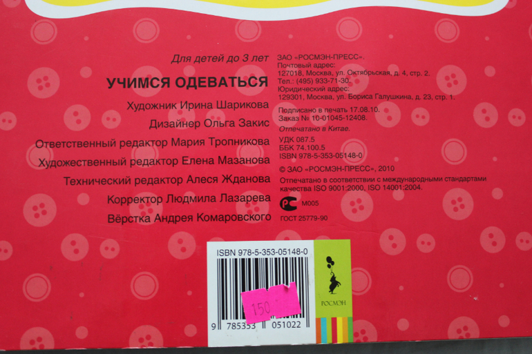 Вот честно, я вообще не уверена, что такие книги детям нужны. Все эти бытовые действия застегивать, растегивать, завязывать можно отрабатывать спокойно в обиходе на себе, одеваясь, и на куклах. Но раз папа нам ее принес, то у меня восторг :)