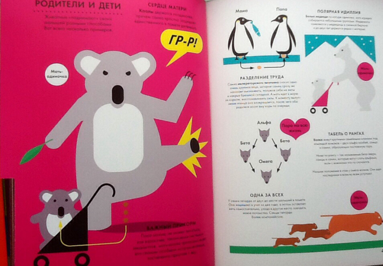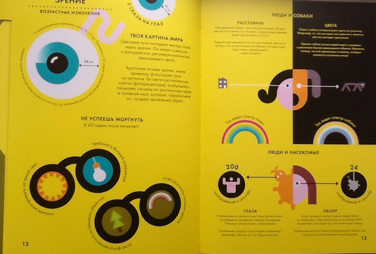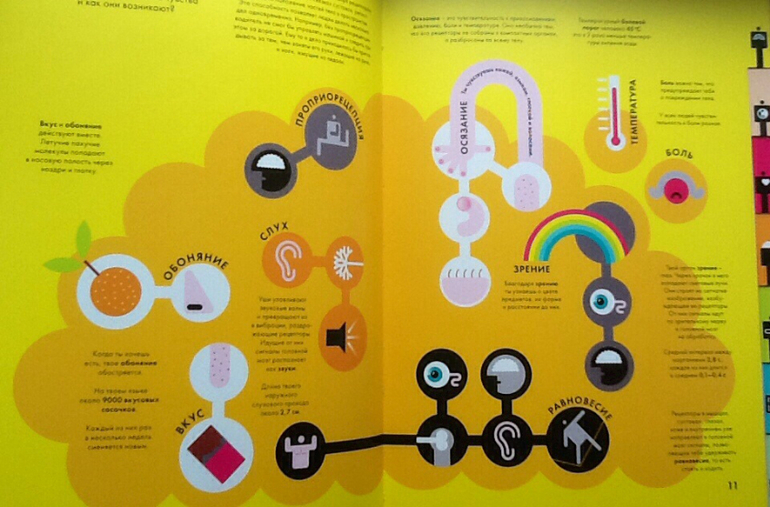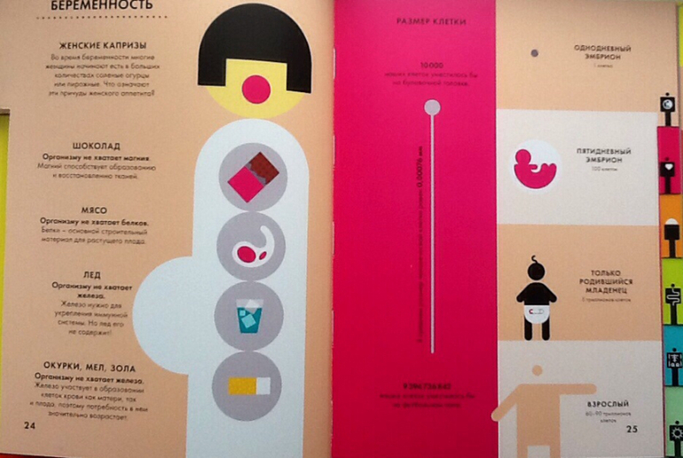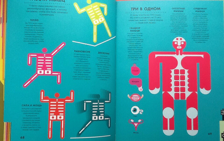 Обе книги очень яркие и красочные. Иллюстраций (в классическом смысле этого слова) нет, зато есть замечательная информационная графика, которая поможет развить зрительную память и гораздо лучше запомнить информацию.