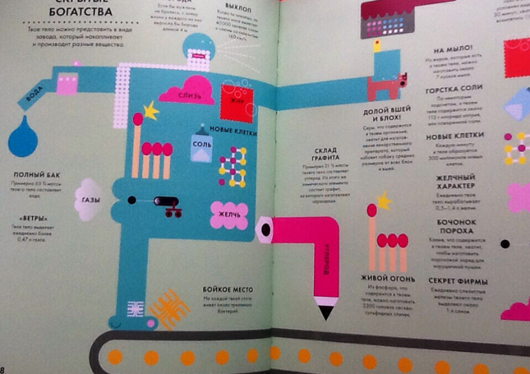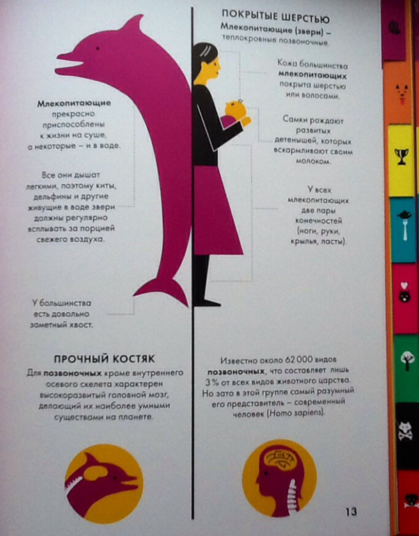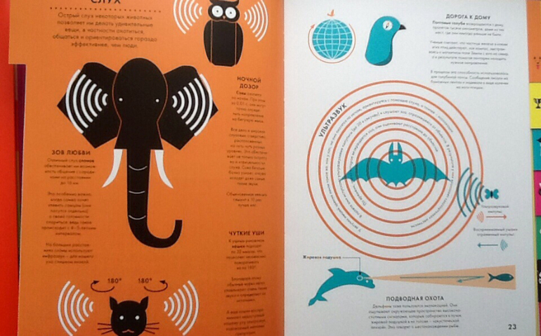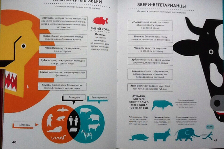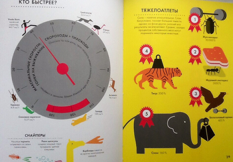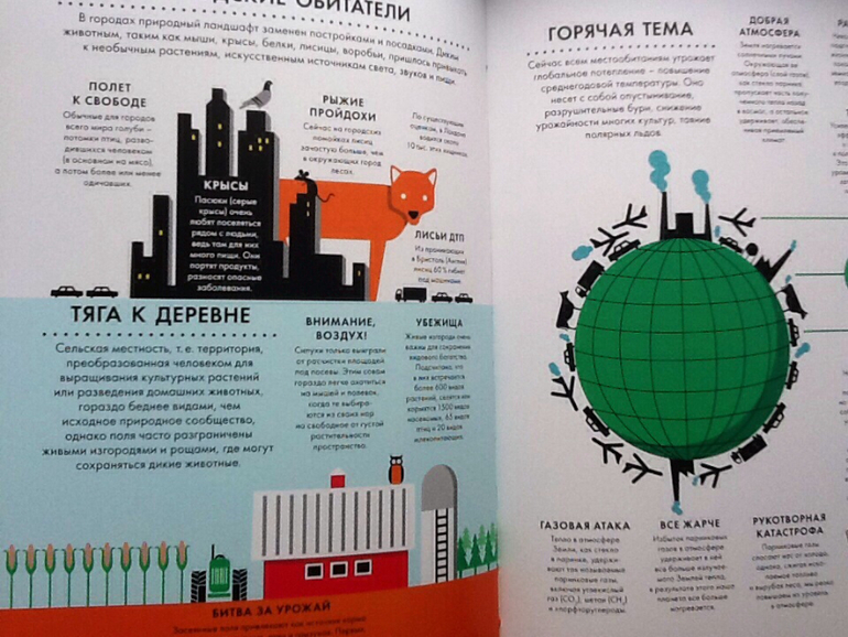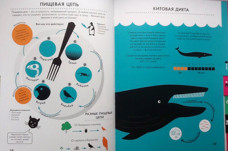 Продолжаю показывать энциклопедии с инфографикой. Точнее, это не совсем энциклопедии, а скорее справочники с интересными фактами. Про первую книгу и инфографику можно почитать тут. Что касается оформления, то у обеих книг оно на высоте. Плотная мелованая бумага, очень приятная на ощупь. Обложка интегральная (мягкий картон), с частичной лакировкой. На страницах есть вертикальная вырубка, что очень помогает при выборе конкретной темы.