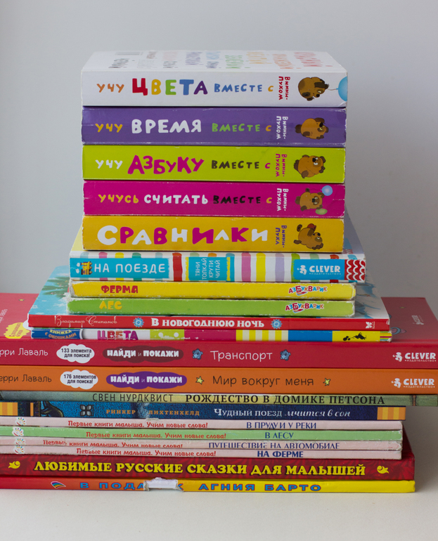 дневник читателяЧтение у нас пока скромное, потому что Ваня очень редко слушает, но все равно интересно как будут развиваться наши отношения с книгами, поэтому решила записывать. Очень нравятся Ване книги "Найди и покажи", внимание развито хорошо, очень многое находит, иногда даже удивляет меня) Понравилось искать схожие предметы на картинках. Но вот слушать... Как только начинаю, стразу старается перелистнуть страничку, иногда кричит "ВСЕ!". Это меня печалит, потому что я бы с ним целыми днями книжки читала) Но иногда все равно слушает. Поняла,что ему нужно прям очень эмоционально читать, со всякими звуками, жестами, тогда хоть что-то слушает. Но оно, конечно, всем интересней так. В общем вот наши книги за последние месяца 2 ..