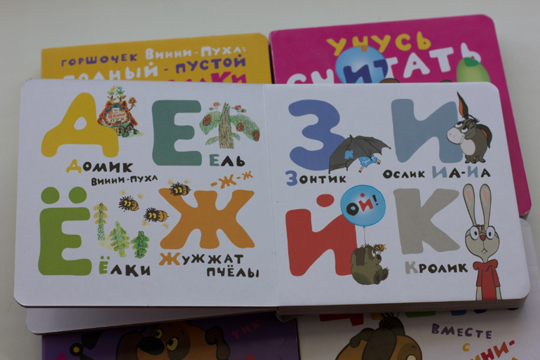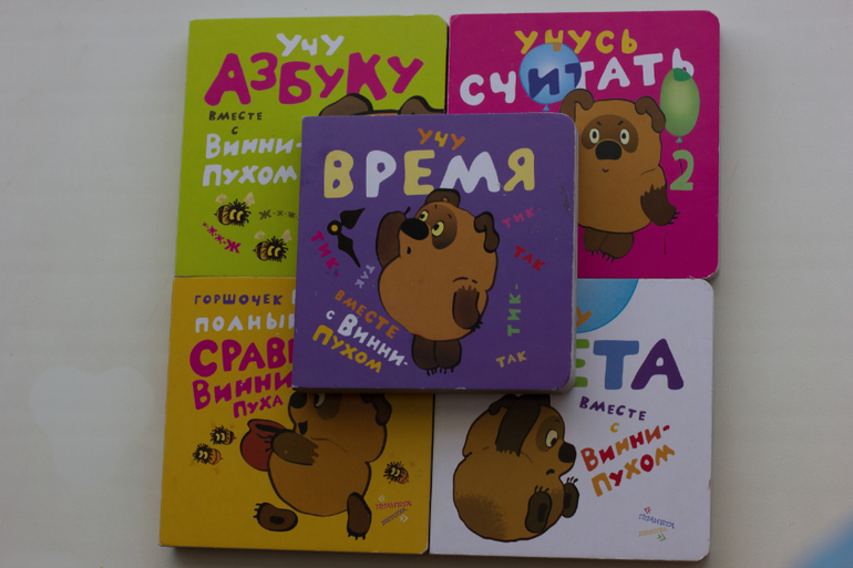 Серию с Винни Пухом взяла из-за большой любви к мультику. Книги очень качественные, прочные, радуют иллюстрации из любимого мультфильма и к тому же познавательные. Но пока к сожалению Ваня сам их редко достает, смотрит картинки иногда и все.