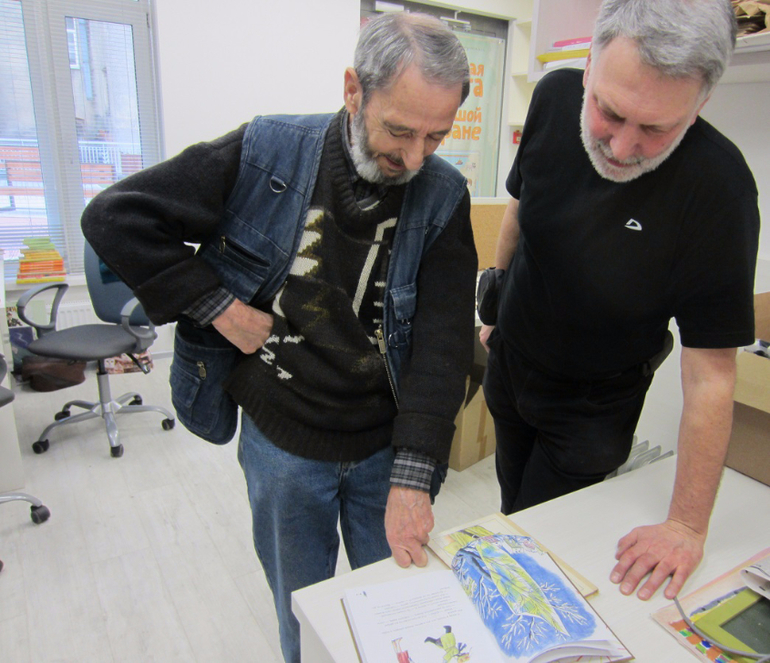 Необычайно волнительно присутствовать на таком событии! А как интересно! Встреча перетекла в разговоры о планах, начались и приятные воспоминания, и занимательнейшие рассказы Михаила Бычкова о работе над иллюстрациями к разным произведениям. Скоро начну мечтать о какой-нибудь книге Михаила Абрамовича "Книги и истории" - до невозможного интересно слушать!!!