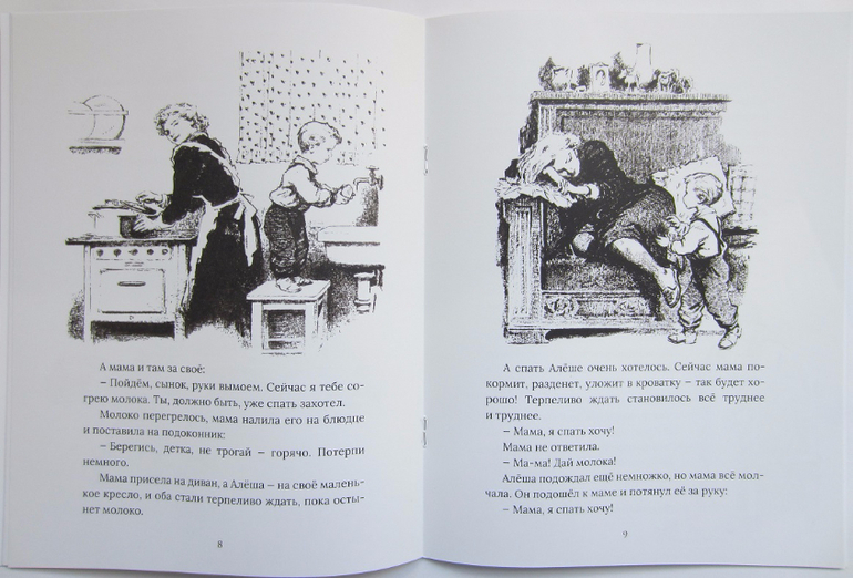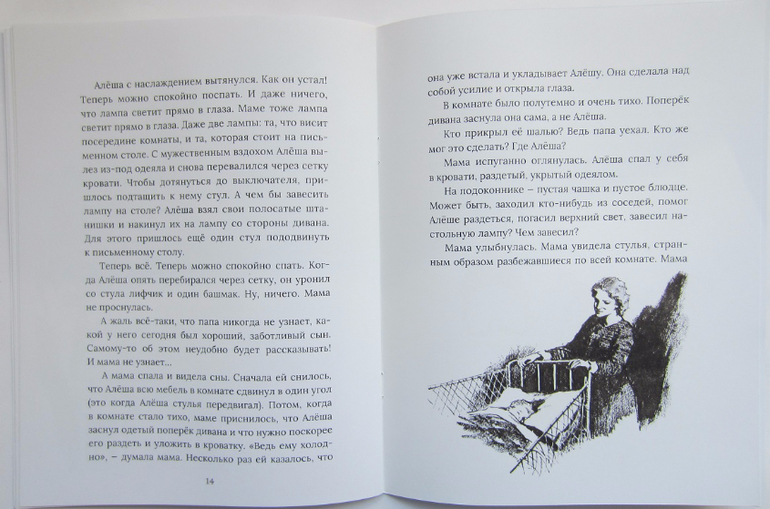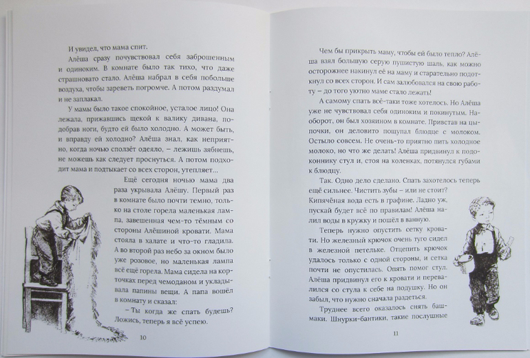И Алёша мужественно доказывает, что может заботиться о маме. Он не заплакал, хотя очень хотелось... Заботливо укрыл маму шалью, выпил уже холодное молоко, почистил зубы. А дальше началось самое сложное: опустить сетку кровати и раздеть самого себя.