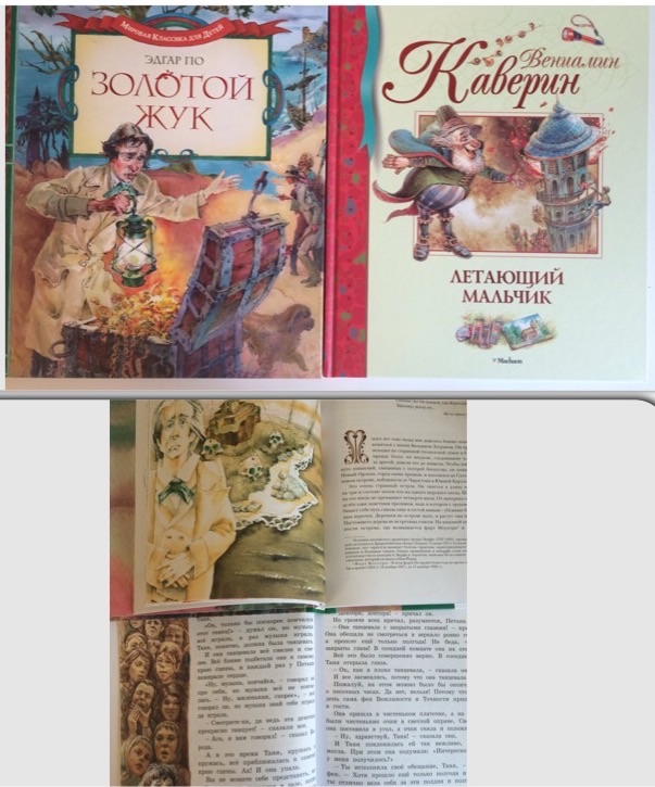 Какое у вас богатство! Старший сын (11,5 лет) уже может читать без иллюстраций, но сам признается, что с картинками интересней. Когда ему было 9 без иллюстраций даже в руки книгу не брал.
