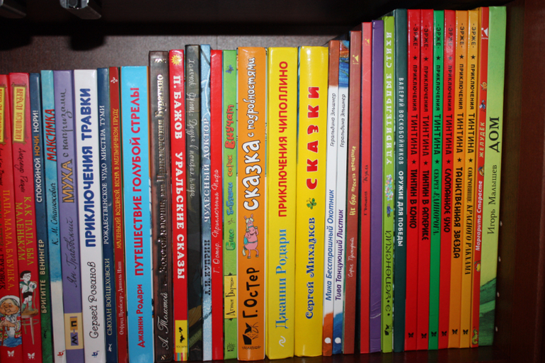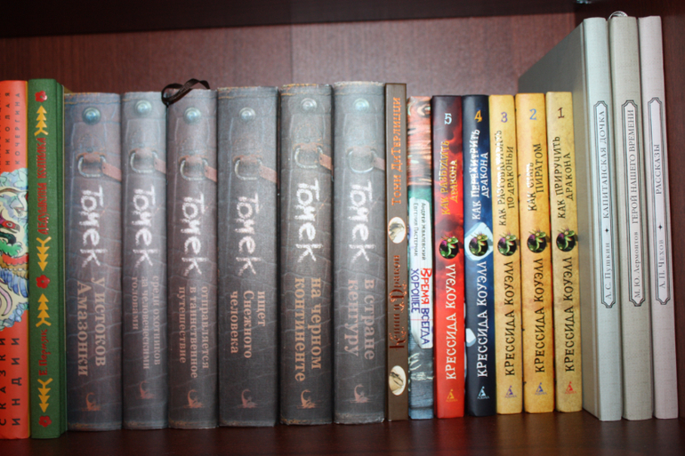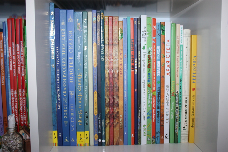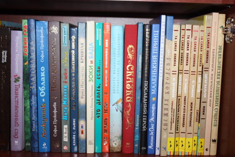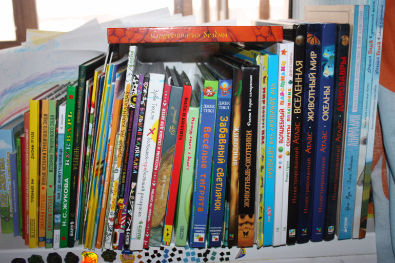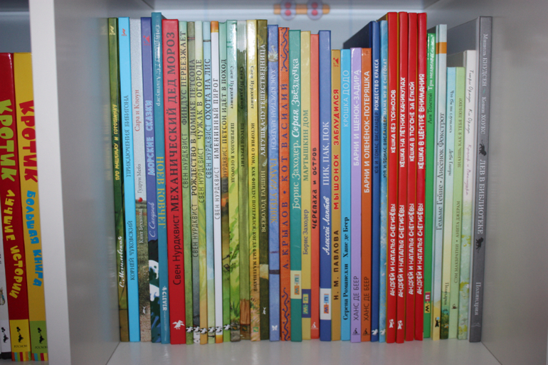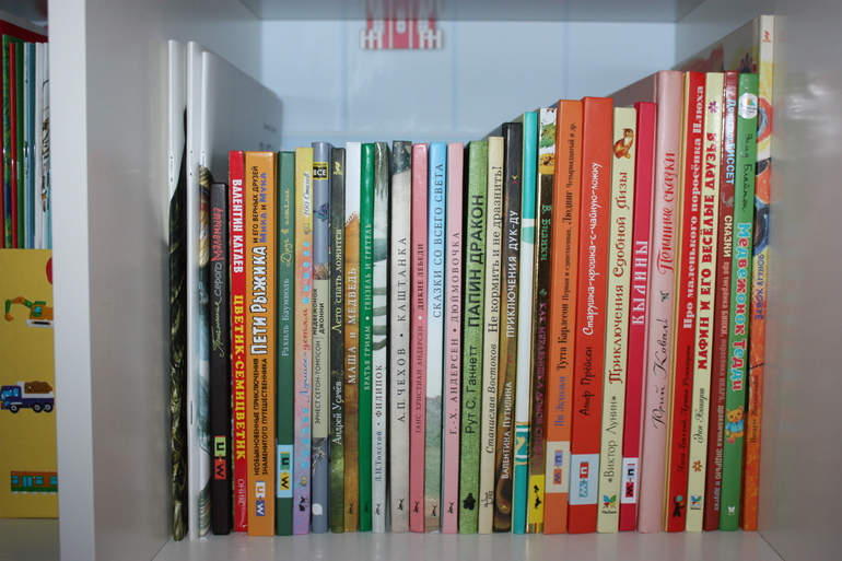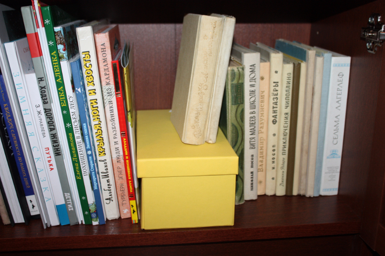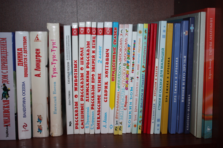 Здесь в основном книги на вырост, плюс много новых книг, до чтения которых очередь не дошла (всё-таки покупаются у нас книги с большей скоростью, чем читаются...).