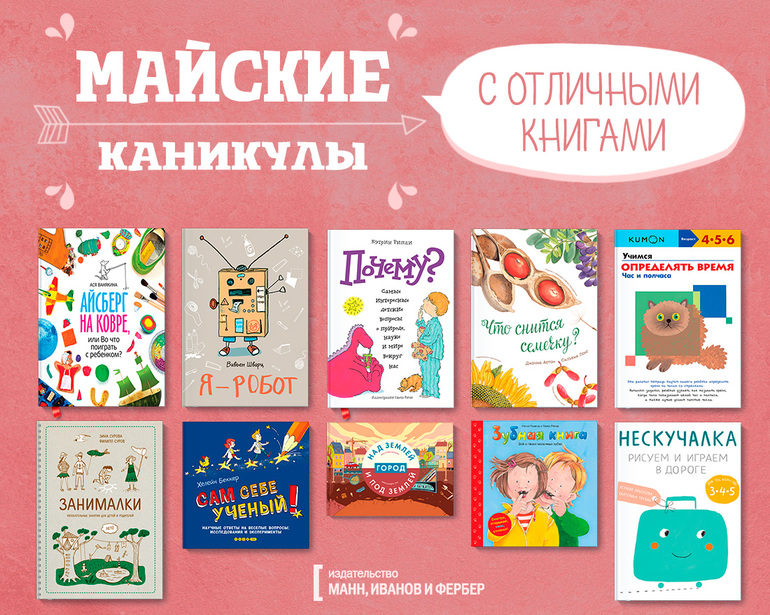 Солнышко светит все ярче, распускаются первые цветы. И у всех уже летне-весеннее настроение. И тут еще долгожданные майские праздники. И, конечно, очень хочется провести их весело и с пользой. Чтобы это получилось, предлагаем вам запастись хорошими книгами. Они помогут отдохнуть всей семьей, расширят кругозор вашего ребенка, скрасят прогулку и путешествие.