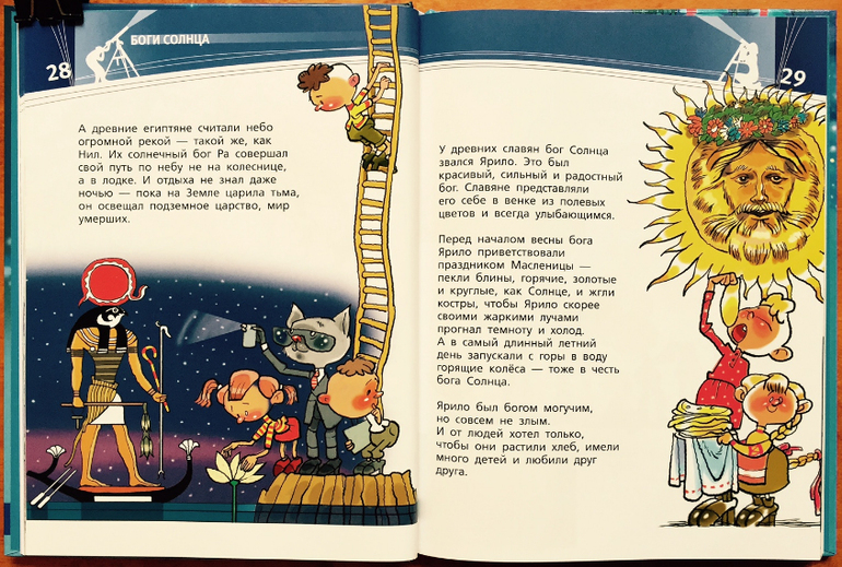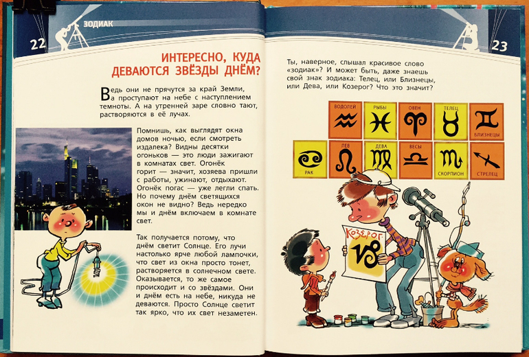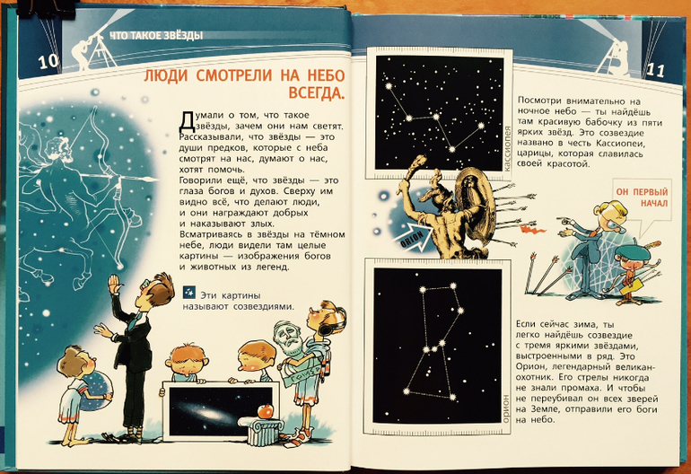 Почти в каждой главе есть небольшой экскурс в историю: почему издавна люди почитали Солнце, как разные народы называли Луну, как люди представляли себе Землю и край света, как боялись хвостатых звезд, какие существовали предания о сотворении мира.