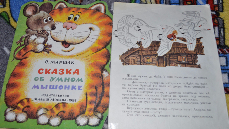 "Гуси-лебеди" тоже сохранились плохо, но Диме они нравятся.Причём есть у нас и новая книга с иллюстрациями нашего любимого Савченко, но читать сын всегда выбирает эту))) Кстати, читать её стали не так давно, месяца 2 назад.Раньше слишком сложный и длинный текст был для него.