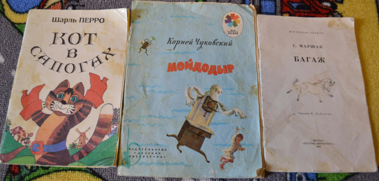 "Мойдодыр" этот нецветной, но очень любимый!Правда сейчас с появлением цветных "Мойдодыров" в нашем доме, этот перестали доставать.Однако эта книга честно заслужила место в нашей стопочке тонких хитов)))