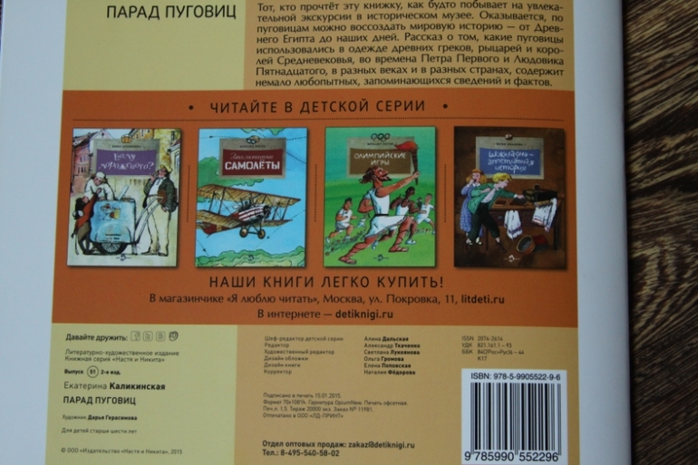 "Парад пуговиц", Екатерина Каликинская, серия "Настя и Никита"