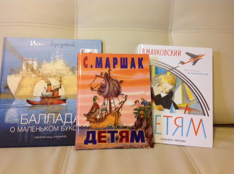 Со стихами у нас напряжёнка, эти книги любит и соглашается читать охотно( но сам не приносит!!!) . Исключение - Бродский... Вот его, когда только появился, Ванька просил читать несколько раз в день в течение полутора месяцев...