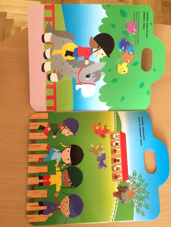 Я купила из этой серии другую в дочкины 1,5 и поняла, что неспроста там маркировка "2+"... Клеит куда попало, отодрать её не может (они сначала намертво приклеиваются) и злится. Может, это только моя такая бестолковая?) Но книженцию пришлось припрятать.