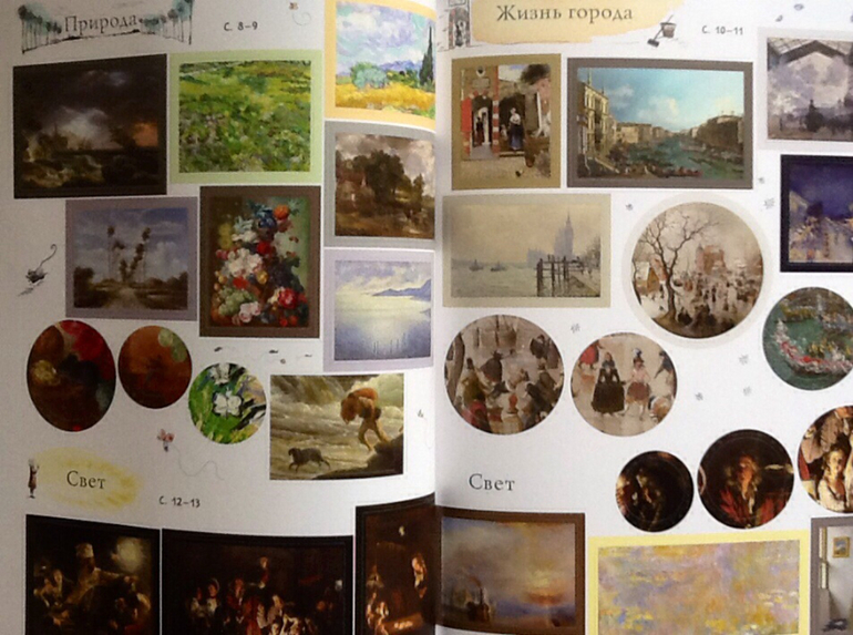 В каждой теме представлены работы художников разных эпох. Альбом содержит историю создания картин, так же дается анализ работ.