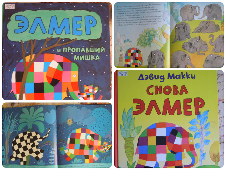 Очередные книги Д.Макки про озорного слона Элмера мы взяли в библиотеке. Ну что они понравятся дочке я даже не сомневалась. Были прочитаны сразу же, как пришли домой. И потом еще много раз)