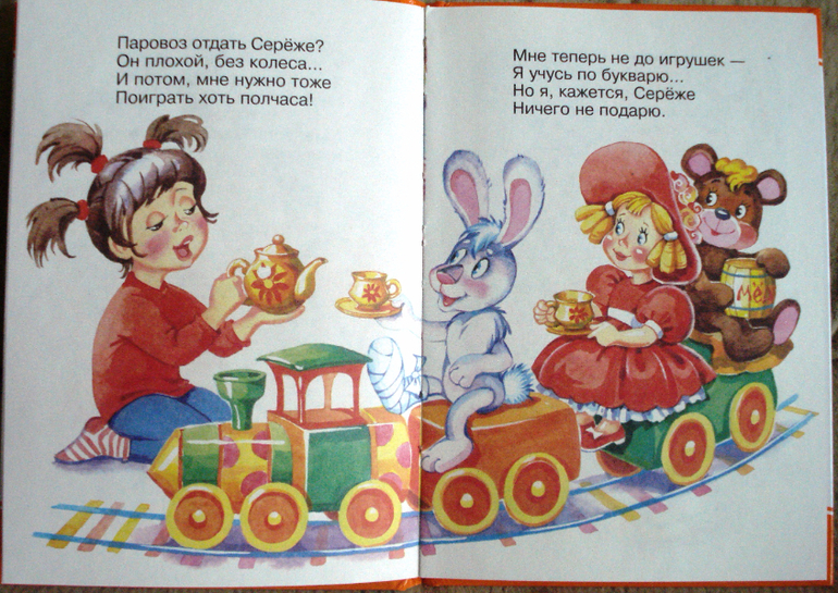 4. Две книжечки издательства "Самовар" - "Мне теперь не до игрушек" (Агния Барто) и "Пусть всегда будет солнце" (детские классики, стихи для детей). Казалось бы - бюджетные книжицы небольшого формата, с довольно милыми картинками и знакомыми стихами. Но ребёнку они очень нравятся, если начинаю читать - обязательно садится рядом и рассматривает картинки, если начинает рассматривать картинки сам, то сразу же просит меня почитать... Вот что значит хорошие стихи и удачные иллюстрации (очень детские!)