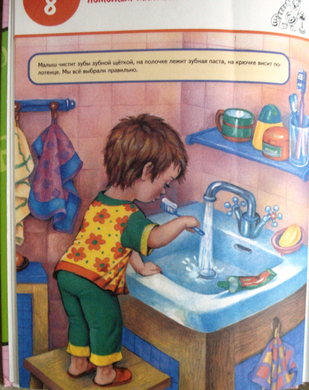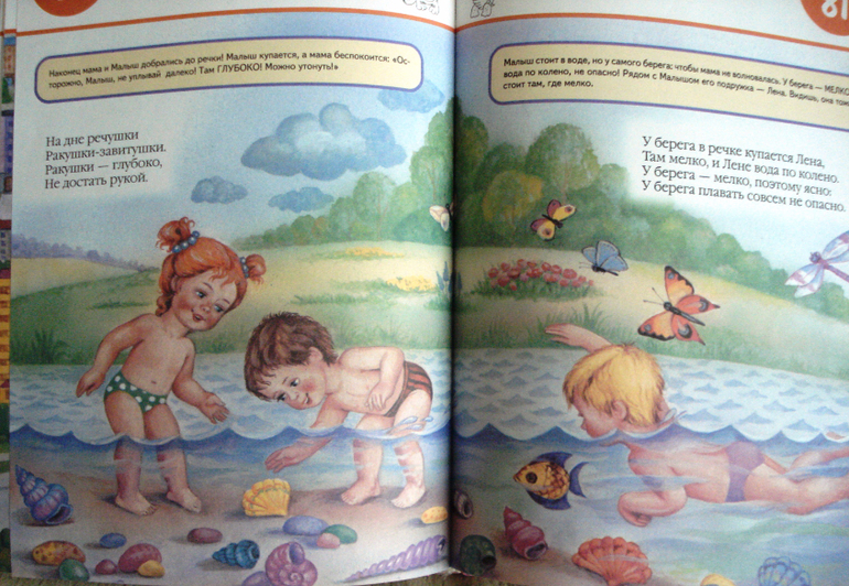 2. "Первый учебник малыша", Росмэн-Пресс, 2004. Добрая книга про Малыша, который растёт и развивается вместе с вашим ребёнком. Вместе с главным героем и ваш малыш узнает много интересного и познавательного - окунётся в мир живой природы, освоит навыки самообслуживания и хорошие манеры, узнает об опасностях, которые поджидают его в жизни, станет более ловким и активным, научится мастерить бумажные кораблики и многое-многое другое. Приятные иллюстрации, простые стихи, увлекательные задания, подсказки для родителей - всё в этой книге вызывает симпатию и привлекает как малышей, так и взрослых. Книга осталась ещё со времён старшего ребёнка, у него как-то быстро интерес пропал к ней, а младший сильно любит)))