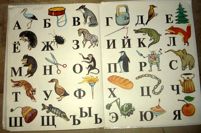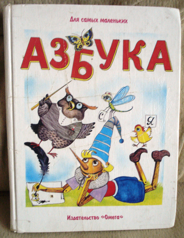 3. "Азбука", Омега, 1996. Для меня до сих пор загадка, что Тёма нашёл в этой книге, что его так привлекает??? Но он её обожает. Обычная азбука с простыми невзрачными картинками, простые стишки, поговорки, загадки. Особенно любИм разворот, где показан весь алфавит с картинками. Книга досталась по наследству, очень старенькая, клеенная-переклеенная, почёрканная...