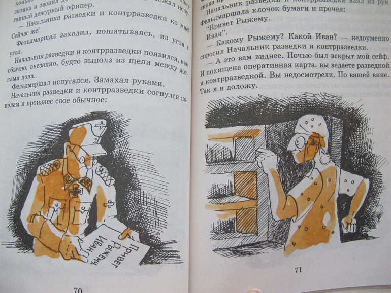 Зато есть юмор. Моих мальчишек позабавили сцены с описанием поведения Фельдмаршала, посмеялись они над его трусостью и глупостью. Иван со своими товарищами не раз оставляют фашистов в дураках.