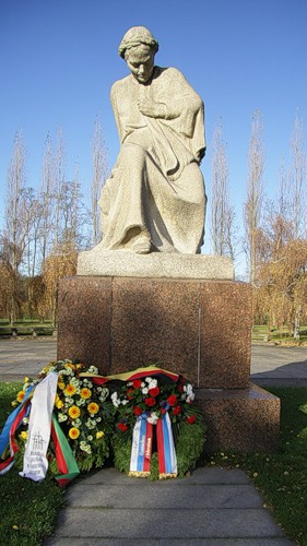 «К подножию памятников зимой и летом несут благодарные люди цветы. Пришли сюда и Алёша с Алёнушкой, внуки и правнуки Деда-Столета. Постояли молча, склонив голову. И сложили люди об Иване эту сказку. А бронзовый Иван с бронзовой девочкой на руках и по сей день стоит в городе Берлине - всему миру виден. А присмотришься - заметишь между девочкой и широкой Ивановой грудью бронзовую краюшку материнского хлеба. И если на Родину нашу нападут враги, оживёт Иван, бережно поставит девочку на землю, поднимет свой грозный автомат и - горе врагам! Вечная слава солдату Ивану!»