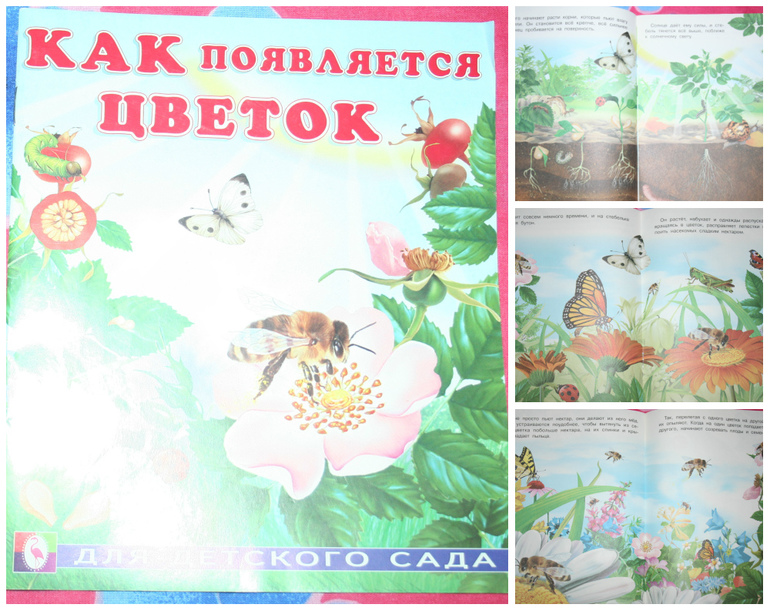 Полезная серия книжечек, которая доступно рассказывает и показывает, как появляется цветок, бабочка, птица и лягушка. У нас как раз про цветок, что очень актуально весной и летом. Читали пока один раз, так как текст простоват и понятия знакомы, но думаю, возвращаться еще будем.