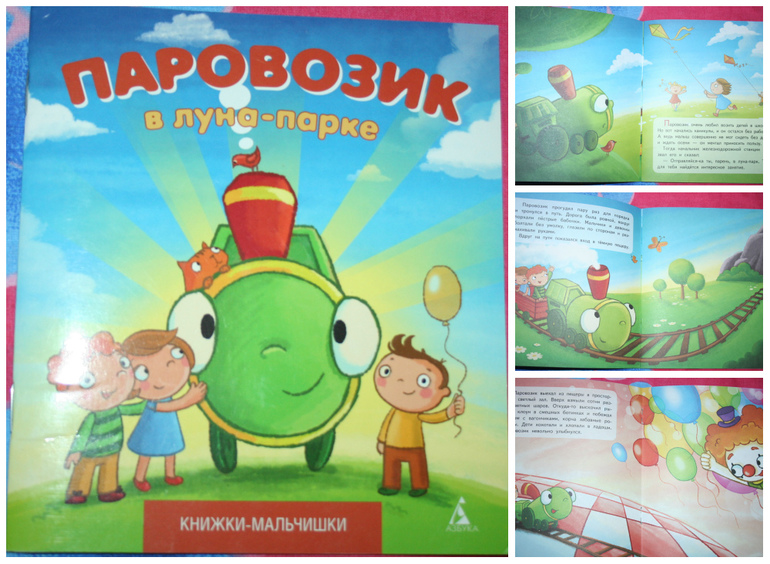 Книжки-мальчишки - просто невероятная серия историй про различный транспорт. У меня растет совсем не мальчишка, но даже Камилка обожает эти книги! К сожалению, их практически нигде нет в продаже, но в Лабиринте сейчас у некоторых из них появился новый статус "ожидается", и это очень радует. Истории все простые, даже может и примитивные, но они такие добрые, по-детски наивные, что невозможно их не любить. "Паровозик" в лунно-парке - вторая книга про маленький Паровоз, который не любит сидеть без дела и вечно в поисках работы. На этот раз он все лето работает в парке развлечений, где дарит радость детворе. Очень милая история, которая никак не теряет свою актуальность в глазах Камика уже который год.