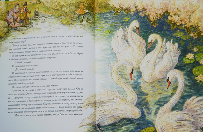 Книга чуть больше формата А4, твердый переплет, мелованная бумага, прекрасное качество печати, иллюстрации на каждом развороте и занимают весь разворот. Крупный и четкий шрифт прекрасно подойдут для тех, кто только начинает читать.