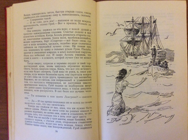 Упоительная атмосфера морских городков Грина, атмосфера тайны и путешествия. И первая любовь. Мне было интересно читать про Биче Сэниэль, но я воспринимал её, как положенную роману героиню... К тому времени я знал, что книжка без девчонки, это редкая редкость и если девчонка там есть, то уже хорошо, когда она не противная, её немного и герой не ведёт себя от неё, как дурак.