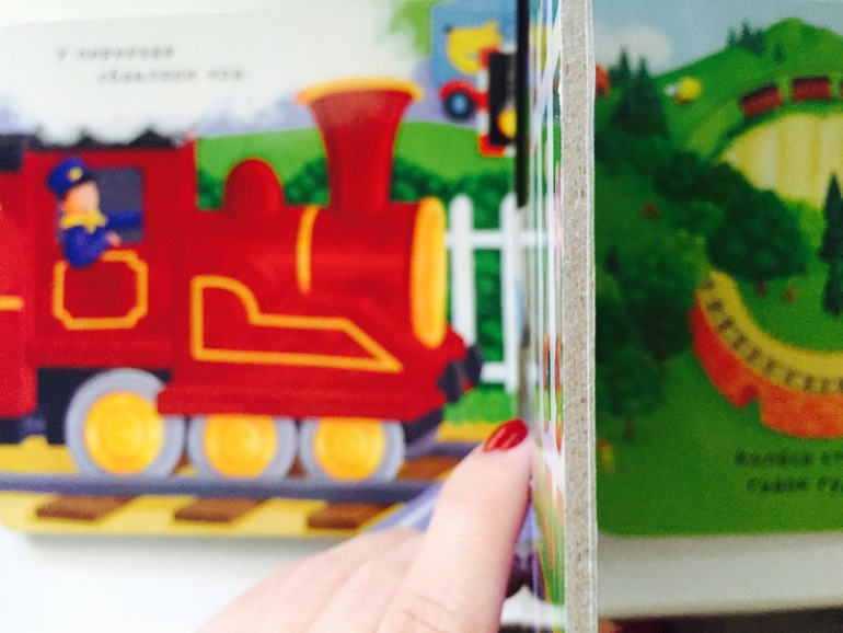 Книжки эти небольшого формата, с отличным качеством печати, листы картонные, очень плотные. Митя читает и теребит их практически каждый день, особенно "На поезде", но все выдвижные элементы, как новенькие.