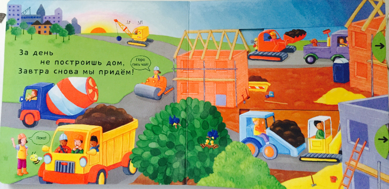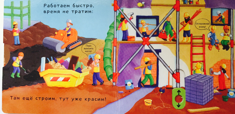 "На стройке": к этой книжке Митюшка долго "привыкал", никак она ему не нравился, только месяца через 2 начал рассматривать и придумывать рассказы