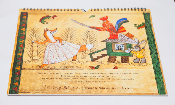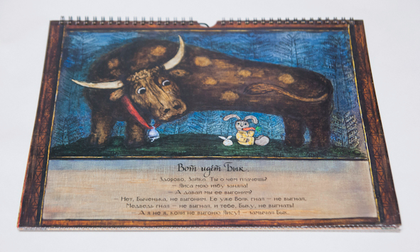 Как уже писала, "Лиса и заяц" у нас в формате перекидного календаря. Да, так смотреть картинки удобнее, но мне больше нравится формат книги. Правда же заяц прикольный? Помните мультфильм такой?