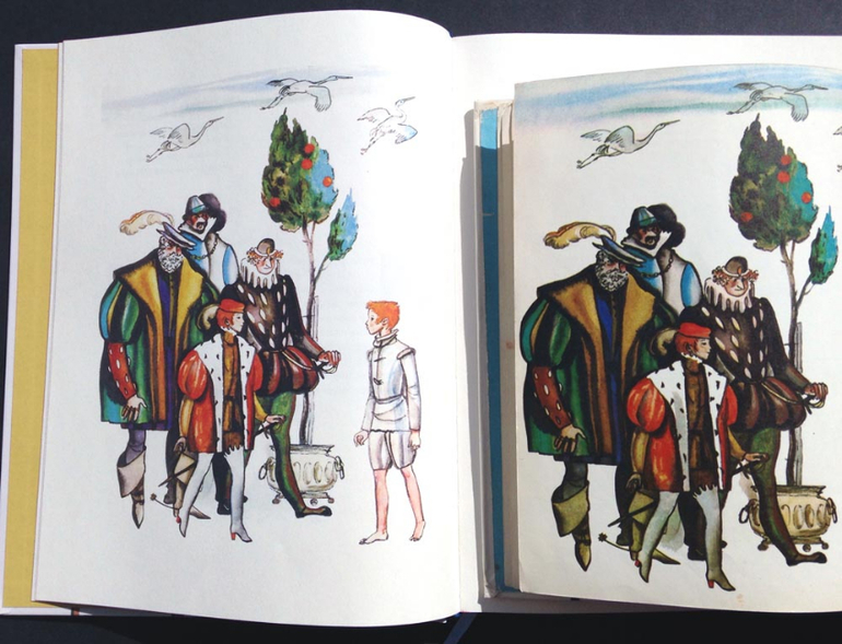 «Принца и нищего» мы выпускаем с классическими иллюстрациями Фёдора Лемкуля, но в новом формате и с новыми элементами оформления. Книга значительно больше, чем ее предшественник 1979 года. Иллюстрации Лемкуля мы очень бережно и аккуратно вписали в новую верстку. Придумали новые форзацы, нарисовали гербы и буквицы, подобрали начертания заголовков, сделали малиновые «королевские» обрезы. Иллюстраций в книге много - два десятка полностраничных разворотов и самые разнообразные по размеру рисунки. В итоге книга смотрится цельным произведением, в котором каждый элемент располагается строго на своем месте и играет свою роль в общем замысле.
