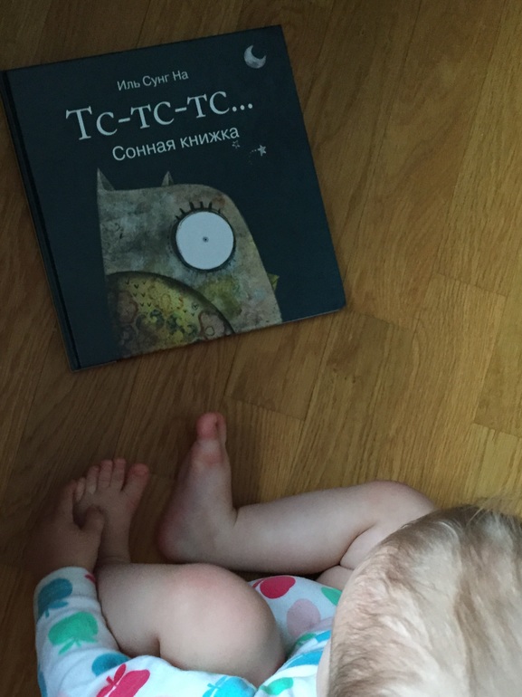 Еще из нашей бибилиотеки дочка выбрала "сонную книгу". Она, конечно, не для самостоятельного разглядывания, страницы тонкие, но глазастые животные очень ее привлекают)