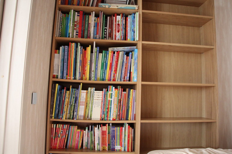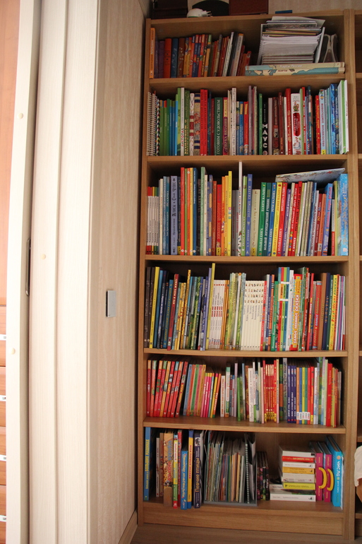 Мой книжный шкаф. Полочки полны, осталось местечко для двух-трех книг. Пожаловалась я мужу, что всё, кончился шкафчик-то. А еще же Незнайки нет у нас, и Карлсона, и еще может чего.