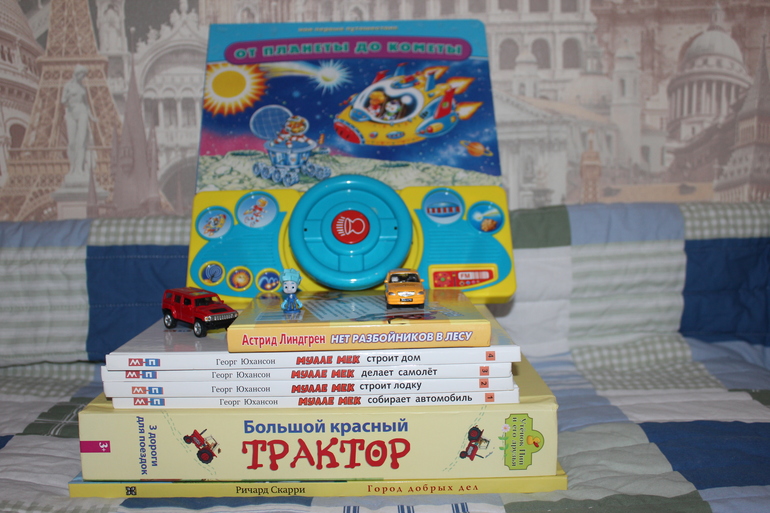 На мой взгляд..... дорого. Нам обошлась в 1 тр. Нравится ребенку очень. Когда открыли и показали — он больше часа отказывался ее отдавать. Достали фигурки с первой вкладки и поставили. Но! нам в 1 г и 2 м еще ооочень рано. Мы просто снимали фигурки с подставок и все. Нравится как трактор едет по колее. Это восторг. Ест-но периодически хватаем, крутим. Но сам трактор нормально сделан. И пока цел ))) Необычная книжка-игрушка.