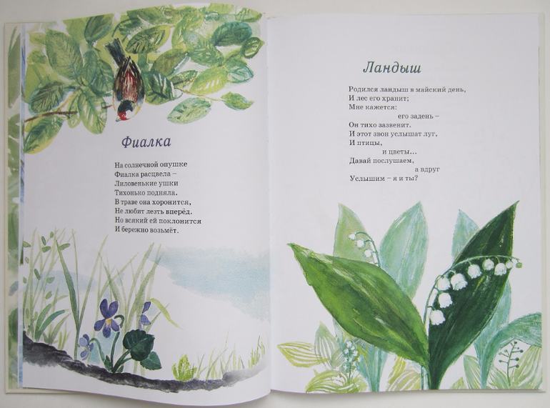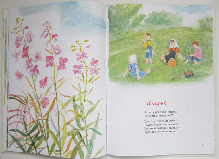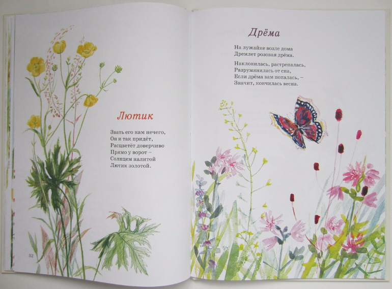 Я думала, что стихотворения окажутся для меня новыми! А оказалось - нет. Многие знаю и помню, хотя книг этих не видела раньше. Скорее всего в сборниках, хрестоматиях они встречались. Милые стихи для знакомства с окружающими нас цветами, не экзотическими, не теми, с которыми мучаются, выращивая, холя и лелея, а с теми, которыми мы можем встретить каждую весну и каждое лето!