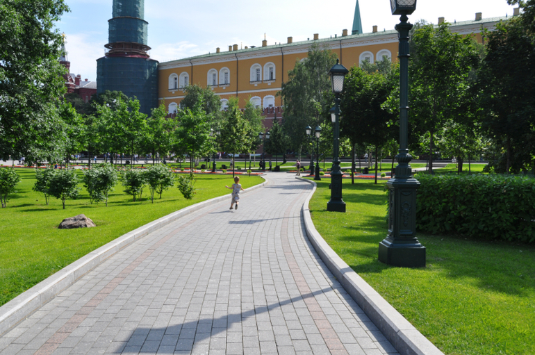 Мы приехали в центр к 9 утра в пятницу (муж привез на машине) и заглянули ко мне на работу позавтракать (не успела утром покормить завтраком малышей). Потом отправились в Александровский сад. На часах 9 30 - нет толпы! ПУСТОТА!!!